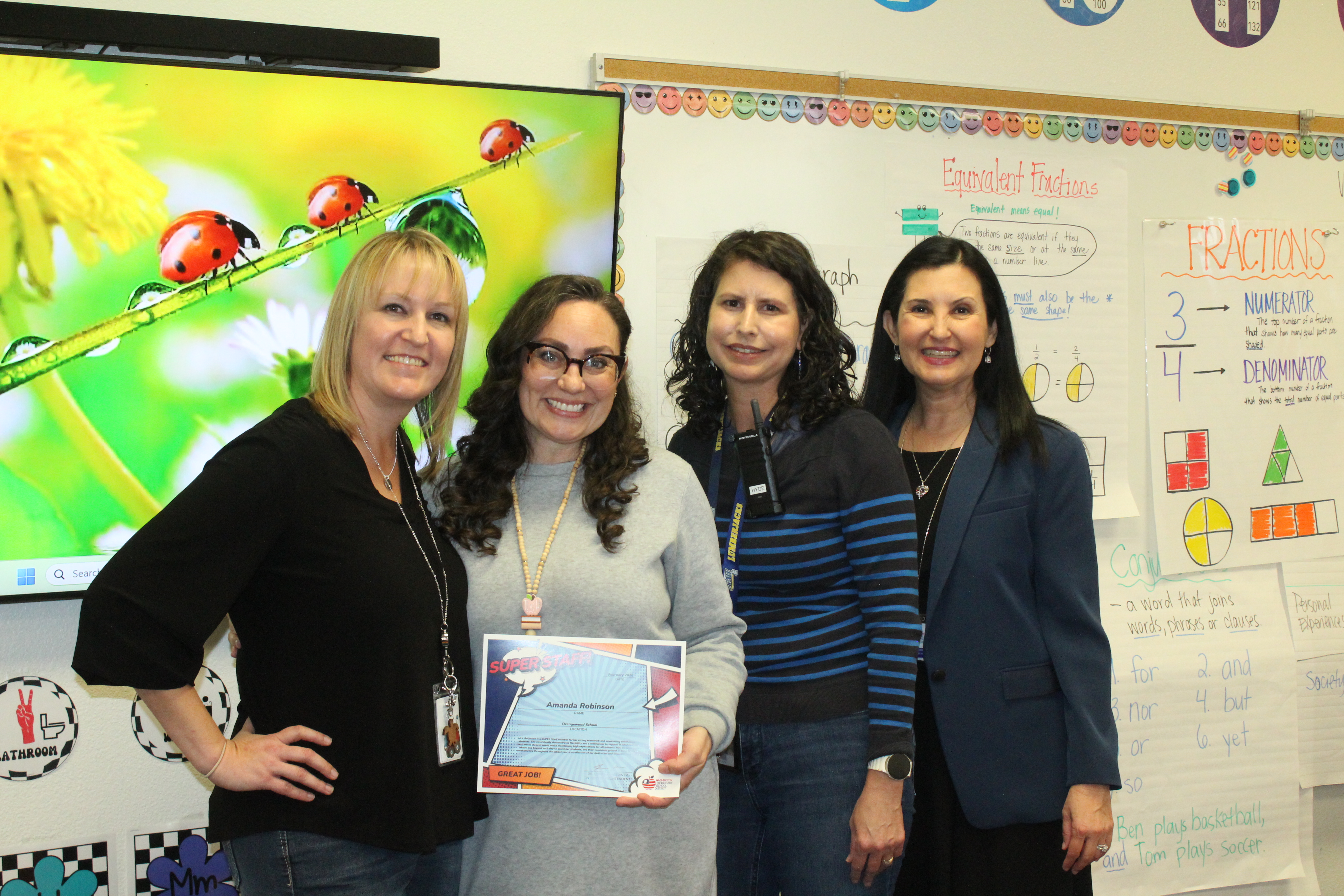 Cheyenne Kides, K–4 resource teacher and Matthew Studey, facilities manager at Maryland; Amber Dickerson, academic interventionist specialist - reading and Judi Logie, sixth grade math teacher at Ocotillo; and Carlos Flores, facilities manager and Amanda Robinson, third grade teacher at Orangewood!